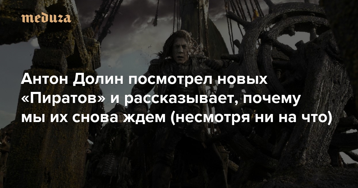 «Пираты Карибского моря: Мертвецы не рассказывают сказки» — пятая часть одной из самых успешных франшиз в истории кино. В главной роли — капитана Джека Воробья — по-прежнему Джонни Депп, а антагониста впервые в «Пиратах» играет Хавьер Бардем. Мировая премьера фильма состоялась 11 мая, российская — 25 мая. По просьбе «Медузы» кинокритик Антон Долин, посмотревший картину, рассказывает о новых «Пиратах» и феномене франшизы, ставшей культовой.