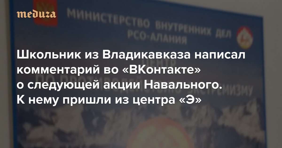 «Людей на митинг выводить — зачем тебе это надо? Займись уроками» Школьник из Владикавказа написал комментарий во «ВКонтакте» о следующей акции Навального. К нему пришли из центра «Э»