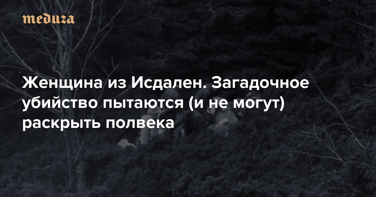 В 1970 году в долине Исдален, неподалеку от Бергена, нашли обгоревшее тело женщины, рядом с ней были разложены личные вещи. То, что показалось сперва странным убийством, вскоре обросло удивительными подробностями — и зацепками, которые вели от одной тайны к другой. На протяжении почти полувека судьба «женщины из Исдален» оставалась неясной; в 2016 году за расследование взялись норвежские журналисты — и в деле начали появляться некоторые новые подробности. «Медуза» рассказывает, что известно об этой жуткой и интригующей истории.