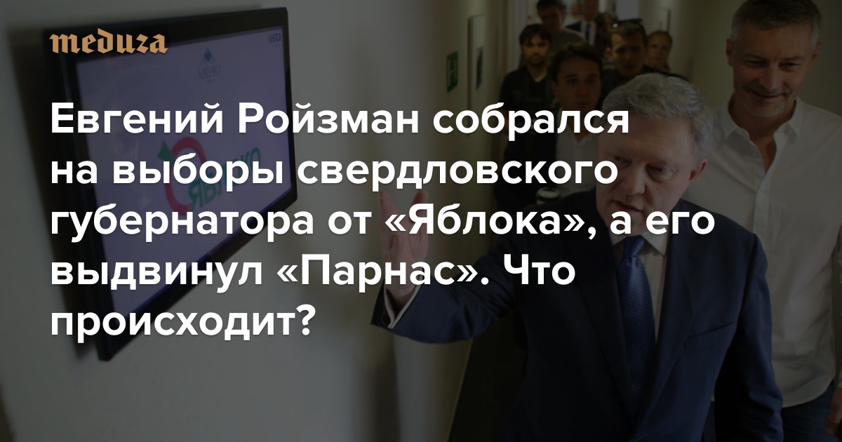 «Парнас» на следующий день после несостоявшейся конференции «Яблока», 18 июня, объявил о выдвижении Евгения Ройзмана. Как заявил член «Парнаса» Максим Верников, главу Екатеринбурга выдвинули на случай, если сорвется его выдвижение от «Яблока».