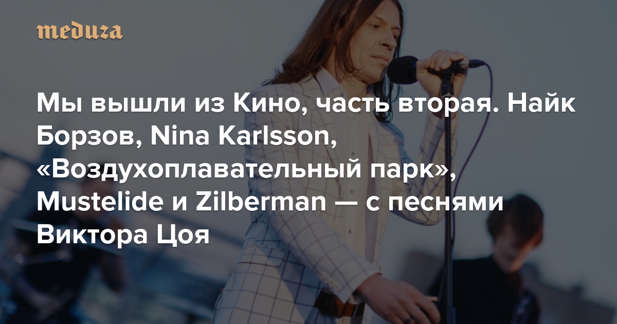 «Медуза» продолжает проект «Мы вышли из Кино» премьерой новых каверов. Во второй части — треки, записанные Найком Борзовым, группой «Воздухоплавательный парк», Nina Karlsson, певицей Mustelide и группой Zilberman (Михаил Идов). По просьбе редакции новые версии песен комментируют сами музыканты.