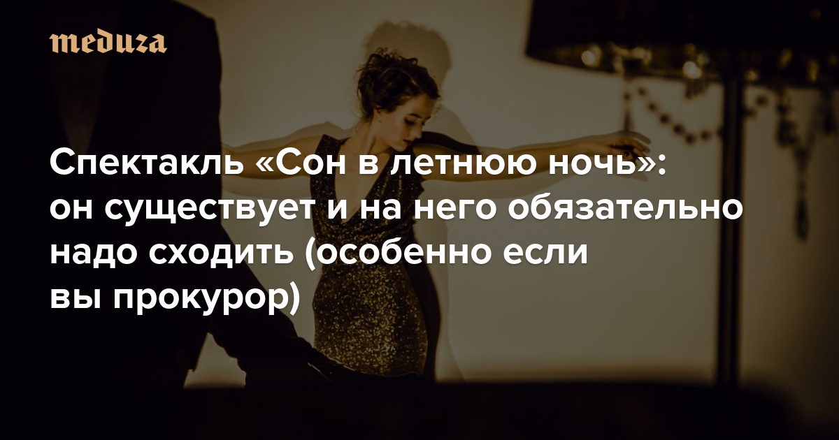 На этой неделе в Москве арестовали бывшего директора «Гоголь-центра» и бывшего генерального продюсера «Седьмой студии» Алексея Малобродского. Его обвиняют в хищении бюджетных средств, выделенных на постановку спектаклей «Седьмой студии». Следствие считает, что Малобродский и другие топ-менеджеры студии украли 2,3 миллиона рублей — вместо того чтобы поставить спектакль «Сон в летнюю ночь». «Статья (имеются в виду рецензии на спектакль — прим. „Медузы“) не свидетельствует о том, что мероприятие действительно было проведено, — говорил в суде прокурор. — Статья может быть о чем угодно. Если бы предоставили видеозапись, то, возможно, мы бы не возражали!» Премьера спектакля состоялась в ноябре 2012 года; более того, «Сон» до сих пор можно увидеть в «Гоголь-центре». По просьбе «Медузы» театральный критик Антон Хитров объясняет, почему на этот спектакль Кирилла Серебренникова нужно обязательно сходить — даже если вы прокурор и не уверены в его существовании.