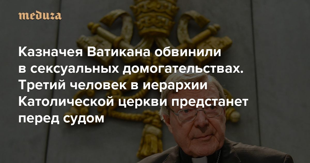 Казначею Ватикана и советнику папы римского — кардиналу Джорджу Пеллу предъявили обвинения в сексуальных домогательствах, которые тот якобы совершил, когда служил в Австралии. Пелл — третий человек в иерархии Католической церкви и самый высокопоставленный сановник, которому предъявляли подобные обвинения. Кардинал уже заявил, что готов предстать перед судом, папа Франциск дал ему временный отпуск. «Медуза» рассказывает главное об одном из самых громких скандалов в Католической церкви.