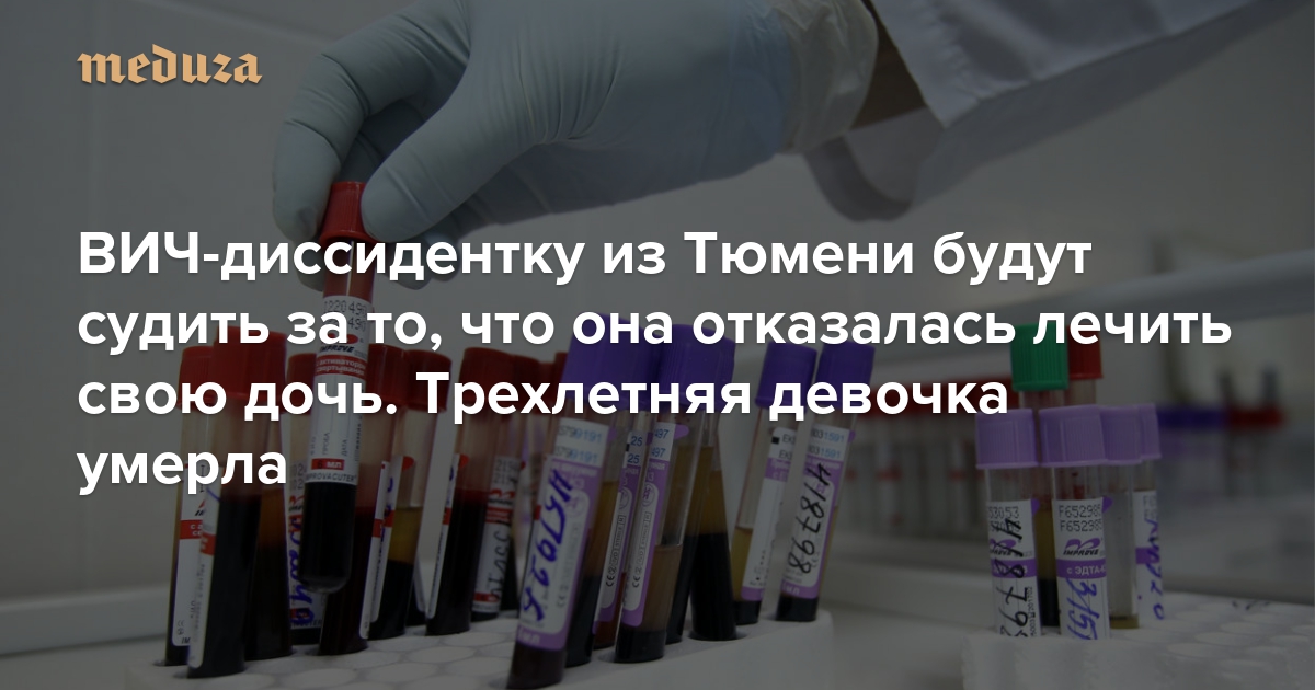 5 июля прокуратура Тюменской области передала в суд уголовное дело в отношении 34-летней жительницы Тюмени — она отказалась лечить свою дочь, у которой был ВИЧ, поскольку не верила в само существование вируса иммунодефицита человека. Трехлетняя девочка умерла; ее мать может получить до двух лет колонии — по статье об убийстве по неосторожности. «Медуза» рассказывает главное об этой истории.
