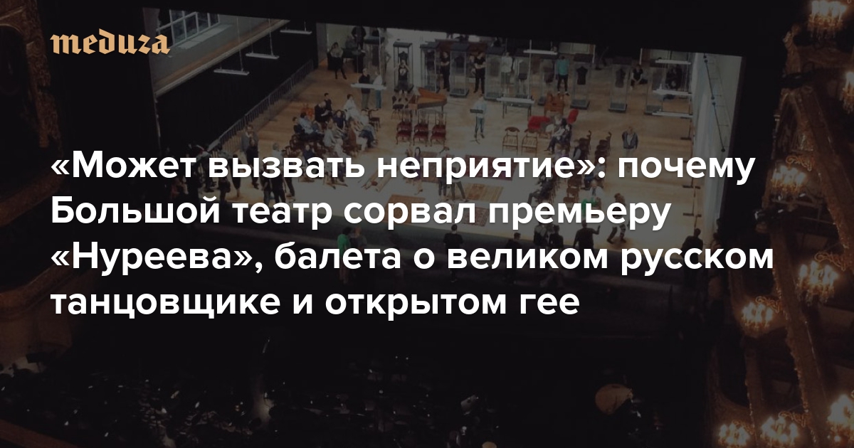 В понедельник, 10 июля, Большой театр (ГАБТ) провел пресс-конференцию, на которой генеральный директор ГАБТ Владимир Урин рассказал о причинах переноса балета «Нуреев» в постановке Юрия Посохова и Кирилла Серебренникова. Согласно официальной версии, балет очень сложный — и по хореографической части к премьере 11 июля оказался не готов. Однако источники ТАСС утверждают, что «Нуреева» отменили по прямому распоряжению министра культуры Владимира Мединского; якобы из-за «гей-пропаганды». «Медуза» подробно рассказывает, о чем говорили на пресс-конференции в ГАБТ — и о других возможных причинах отмены «Нуреева».