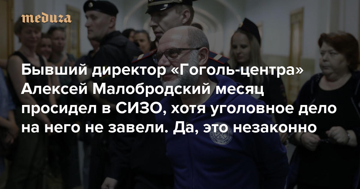 Бывший директор «Гоголь-центра» Алексей Малобродский месяц просидел в СИЗО, хотя уголовное дело на него не завели. Да, это незаконно