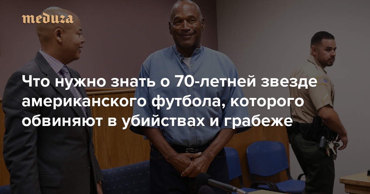 20 июля комиссия по условно-досрочному освобождению в штате Невада решила сократить тюремный срок бывшему игроку в американский футбол, одному из самых успешных спортсменов в этом виде спорта О Джей Симпсону. С 2008 года Симпсон отбывал 33 года, к которым его приговорили за вооруженное ограбление; теперь он выйдет на свободу 1 октября. Ранее Симпсона обвиняли в том, что в 1994 году он убил свою бывшую жену и ее приятеля; суд над футболистом стал самым медийным процессом в истории США. «Медуза» рассказывает, кто такой О Джей Симпсон и почему к его делу было приковано пристальное внимание.