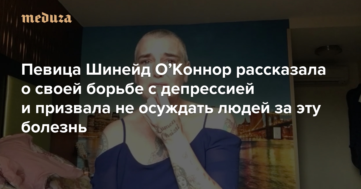 Ирландская певица Шинейд ОʼКоннор выложила у себя в фейсбуке видео, где говорит о многолетней депрессии и желании покончить с собой — а также о том, что из-за болезни осталась совсем одна. Ролик вызвал большой отклик в соцсетях: пользователи выражают поддержку певице, предлагают ей помощь и обсуждают, как вести себя с людьми, у которых депрессия.