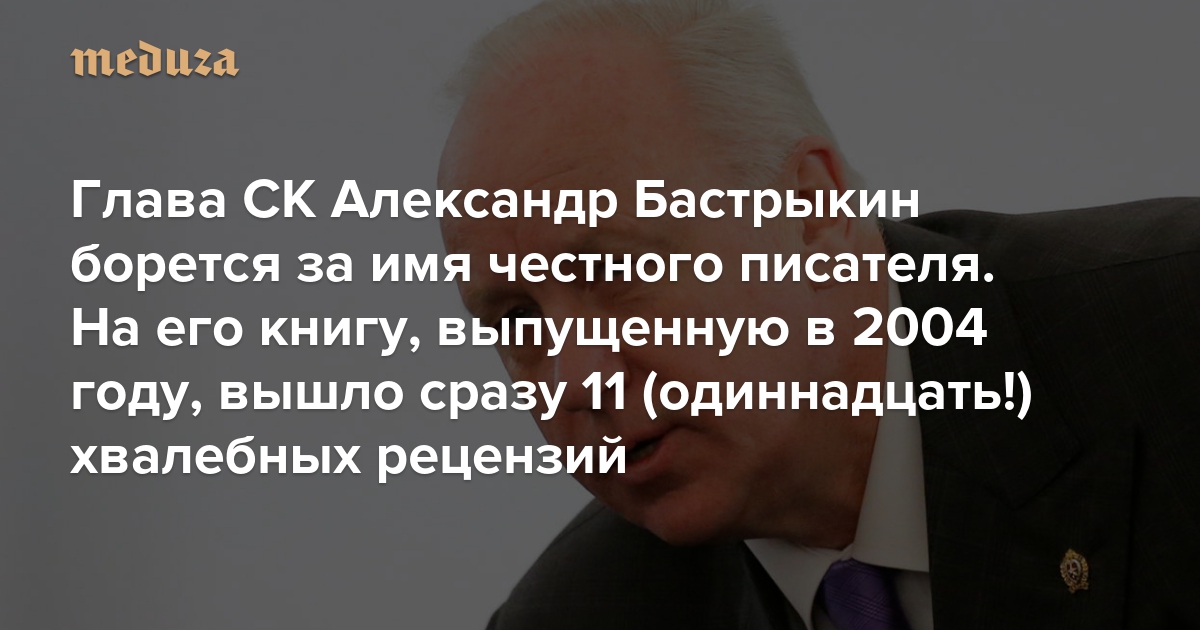 Глава СК Александр Бастрыкин борется за имя честного писателя. На его книгу, выпущенную в 2004 году, вышло сразу 11 (одиннадцать!) хвалебных рецензий