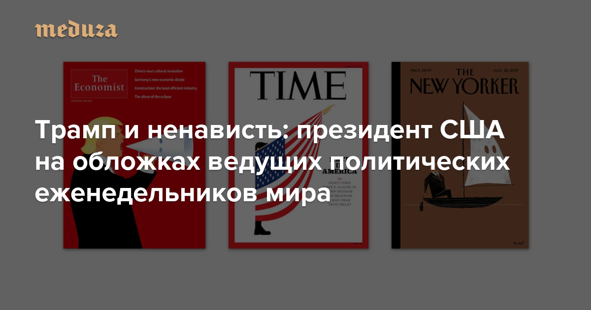События в Шарлоттсвиле, где столкновения ультраправых активистов и их оппонентов привели к жертвам, а также реакция на них президента США Дональда Трампа — главная тема западных политических журналов на этой неделе. «Медуза» показывает три обложки, по которым наглядно видно, как издания связывают Трампа с эскалацией насилия в США.