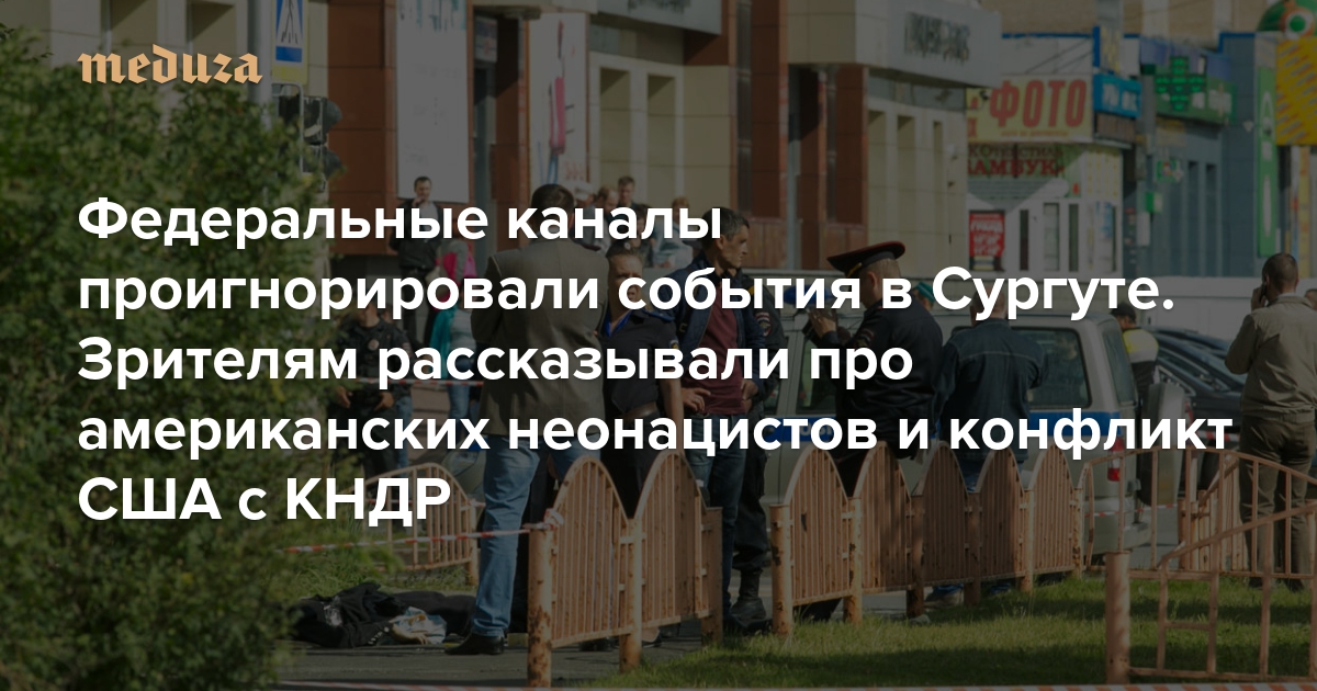 Теракты в Каталонии — главная тема недели во всех мировых СМИ. Однако 19 августа в Сургуте произошло другое нападение: мужчина бросился с ножом на прохожих, ранил семь человек и был застрелен полицией. Ответственность за нападение взяло на себя «Исламское государство», но дело не расследуют как теракт. Итоговые передачи российских федеральных каналов произошедшее в Сургуте проигнорировали. Вот о чем рассказали телезрителям.