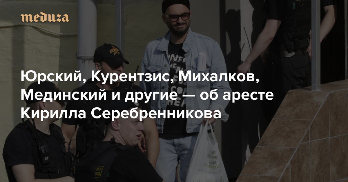 23 августа Басманный суд Москвы отправил под домашний арест российского режиссера, художественного руководителя «Гоголь-центра» Кирилла Серебренникова. Следствие обвиняет Серебренникова и несколько сотрудников созданной им «Седьмой студии» в хищении бюджетных средств. У суда собрались сотни людей, которые протестовали против его преследования. В поддержку режиссера выступили десятки известных актеров и других деятелей культуры. «Медуза» следит за тем, как комментируют новость о домашнем аресте Серебренникова артисты, деятели культуры и чиновники.