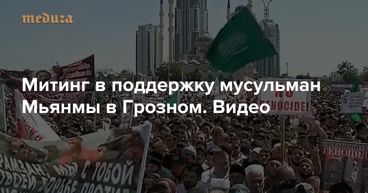 В Грозном 4 сентября прошел многотысячный митинг в поддержку мусульман, которые подвергаются преследованиям в Мьянме. Провести акцию предложил глава Чечни Рамзан Кадыров. Власти Мьянмы обвиняют представителей народа рохинджа, исповедующего ислам, в нападениях на полицейских, против рохинджа проводится спецоперация. В столкновениях за неделю погибли несколько сотен человек. В Мьянме ислам исповедуют 4,3 процента населения. Большинство жителей страны — буддисты.