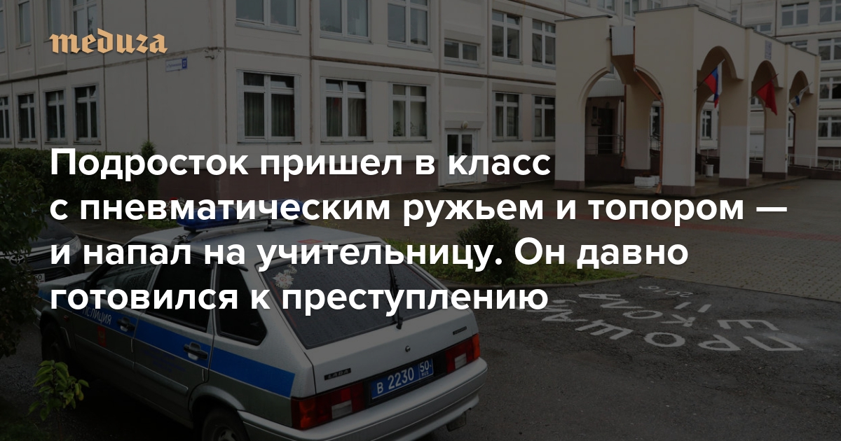 Стрельба в подмосковной школе. Главное Подросток пришел в класс с пневматическим ружьем и топором — и напал на учительницу. Он давно готовился к преступлению