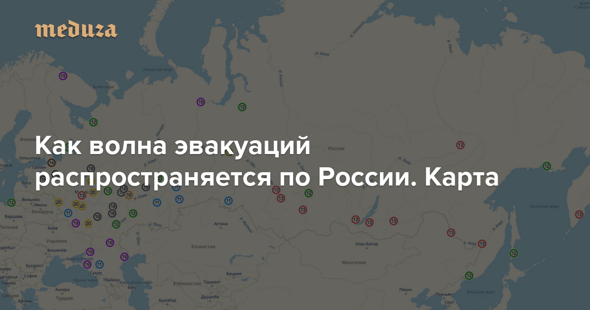 С 11 сентября в российских городах продолжаются массовые эвакуации из-за анонимных звонков о готовящихся взрывах. Звонящие используют виртуальные номера IP-телефонии и обычно называют сразу несколько «заминированных» объектов: школы, административные здания, торговые центры, вокзалы, аэропорты. По всей России за три дня эвакуировали уже 45 тысяч человек, ни в одном случае бомбу не нашли. «Медуза» составила карту городов, где проводили эвакуацию.