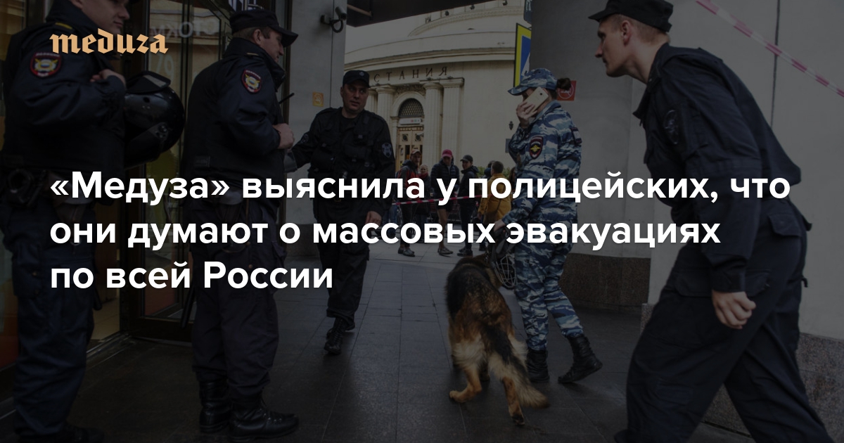 С 11 сентября в крупных городах России продолжаются загадочные массовые эвакуации граждан из торговых центров, вузов, школ, администраций и с других объектов — официально сообщается, что туда поступали анонимные звонки о бомбах. МЧС, МВД, ФСБ и Минобороны ситуацию почти не комментируют; на основе просочившихся данных можно сделать вывод, что версий две: это учения либо спланированная атака «телефонных террористов» из-за границы. В МВД оценивают ущерб от эвакуаций в 300 миллионов рублей. С «Медузой» на условиях анонимности согласились поговорить действующие и бывшие полицейские и представители гражданской обороны: они рассказали, как проходили эвакуации — и что о происходящем думают в силовых ведомствах.