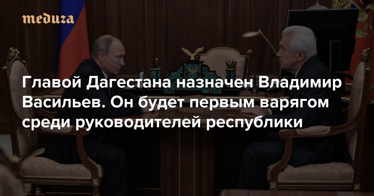 И.о. главы Дагестана назначен лидер фракции «Единой России» в Госдуме Владимир Васильев. Васильев заседает в Думе с 2003 года, он возглавил фракцию в ноябре 2012-го, тогда же стал вице-спикером. Васильев 27 лет прослужил в органах МВД, у него звание генерал-полковника полиции. В 1999-м ушел со службы на должность заместителя секретаря Совета безопасности РФ. В 2001-2003 годах — замминистра внутренних дел России.