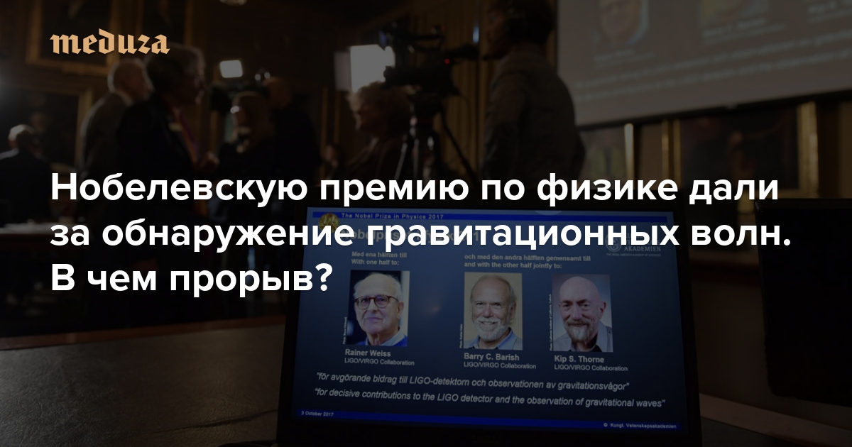 Ученые Райнер Вайсс, Барри Бариш и Кип Торн 3 октября получили Нобелевскую премию по физике — за обнаружение гравитационных волн детектором LIGO. Открытие произошло в сентябре 2015 года, официально об обнаружении гравитационных волн объявили в феврале 2016-го. Руководитель лаборатории прикладной инфракрасной спектроскопии МФТИ, физик Александр Родин объяснил «Медузе», почему Нобелевскую премию дали именно за это открытие.