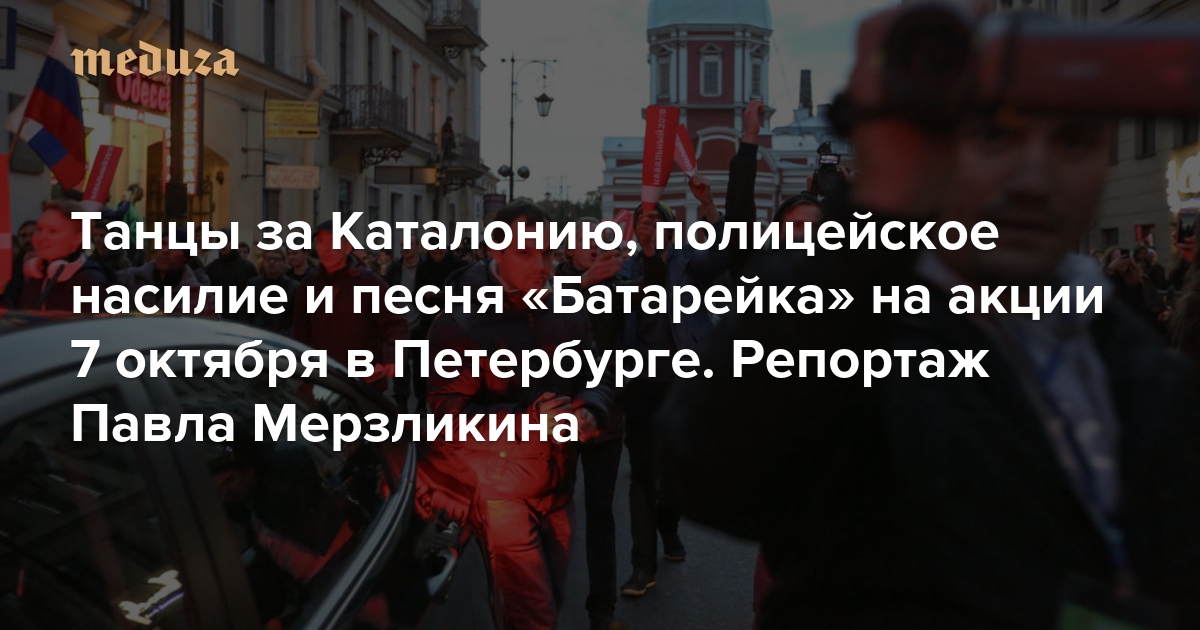 Просто дети же вышли Танцы за Каталонию, полицейское насилие и песня «Батарейка» на акции 7 октября в Петербурге. Репортаж Павла Мерзликина