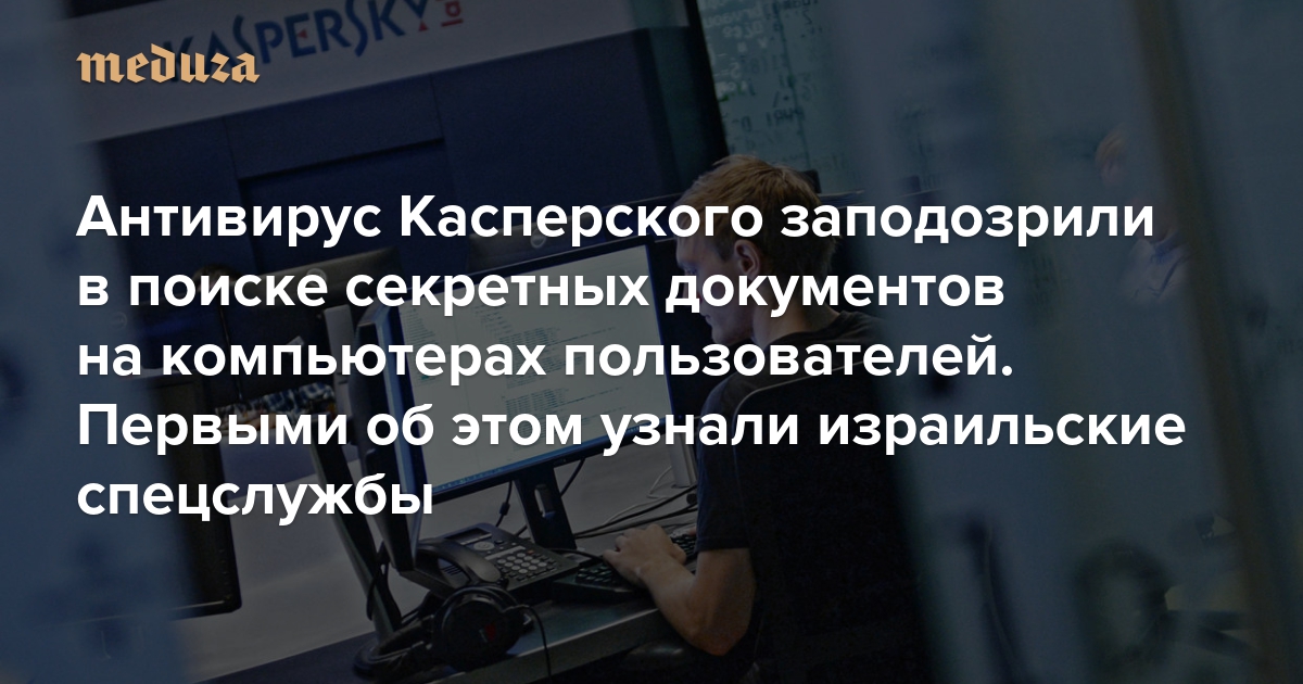 Антивирус Касперского заподозрили в поиске секретных документов на компьютерах пользователей. Первыми об этом узнали израильские спецслужбы