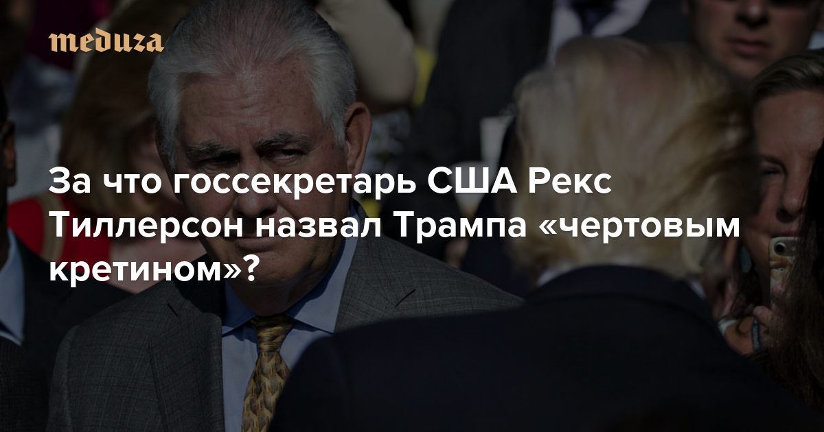 В начале октября телеканал NBC выяснил, что госсекретарь США Рекс Тиллерсон, один из самых влиятельных людей в Белом доме, в июле 2017 года назвал американского президента Дональда Трампа «чертовым кретином». Тиллерсон грозился уволиться; конфликт удалось уладить вице-президенту Майку Пенсу. Есть несколько версий, почему Тиллерсон мог так отозваться о своем начальнике; последняя появилась совсем недавно — и выглядит наиболее правдоподобной.