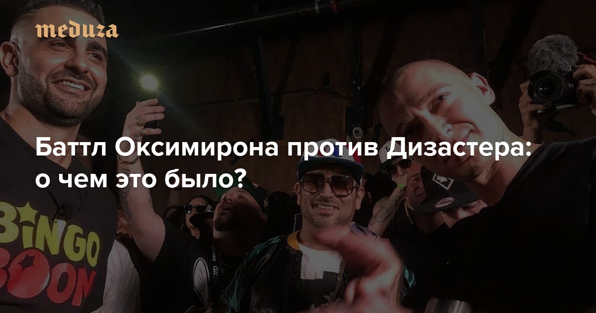 В ночь на 16 октября по московскому времени в Лос-Анджелесе прошел рэп-баттл между россиянином Оксимироном и американцем Дизастером. Баттл проходил на английском языке (с вкраплениями русского, немецкого и арабского); судей в нем не было — кто победил, каждый выбирает для себя. Запись баттла с русскими субтитрами должна в течение нескольких часов появиться на ютьюбе, также вечером 16 октября его собирается показать российский телеканал ТВ-3 (но это не точно). «Медуза» рассказывает, о чем читали Оксимирон и Дизастер.