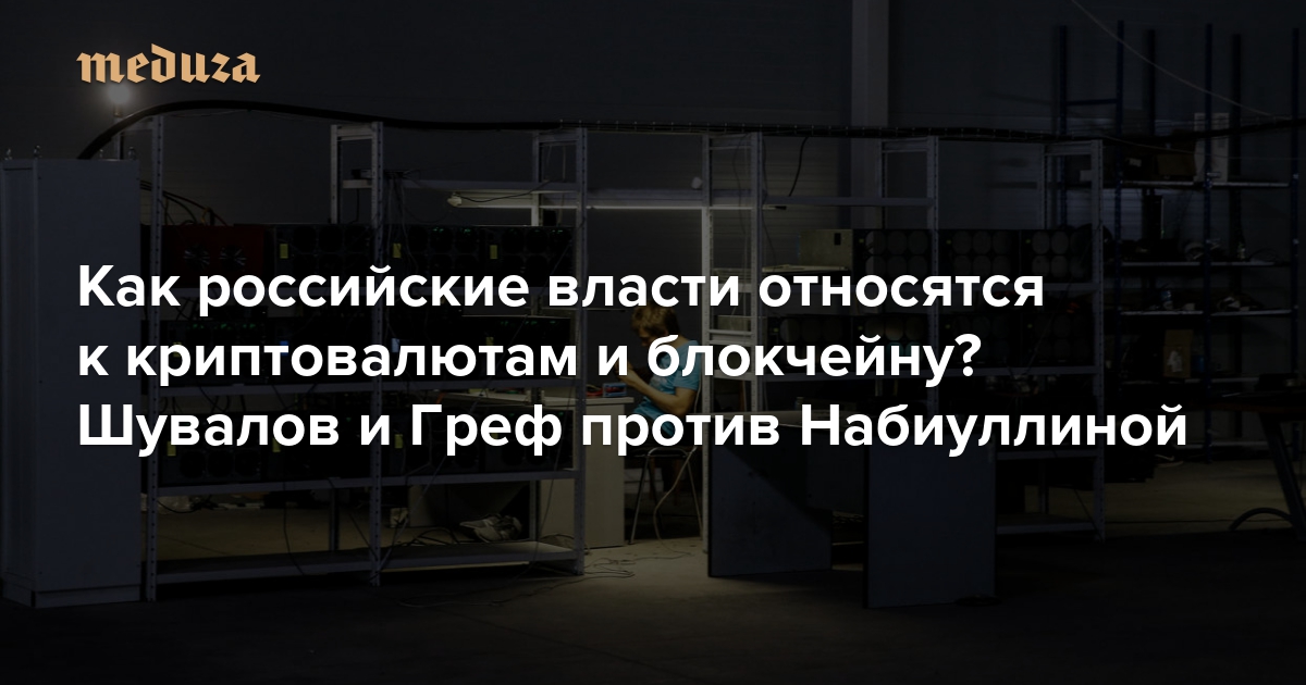 Другой криптоэнтузиаст, Игорь Шувалов, от биткоина и его аналогов дистанцировался. «Шувалов сразу и жестко отмел от себя все истории с майнингом. Сказал — это не наша тема. На одном из совещаний он выслушал экспертов, которые сказали, что вся эта история очень похожа на пирамиду, — рассказал „Медузе“ чиновник, участвующий в совещаниях у Шувалова. — Его позиция проста: вы хотите майнить? Не проблема, занимайтесь биткоинами, эфирами, чем хотите. Можете строить фермы, ночевать около атомных электростанций — велкам. Но это не приоритет государства, и оно не должно брать эти риски на себя. Ситуация с заработком на криптовалютах связана с желанием легкой наживы и очень напоминает историю с валютной ипотекой: говорили — не берите, но все позарились на низкие ставки».