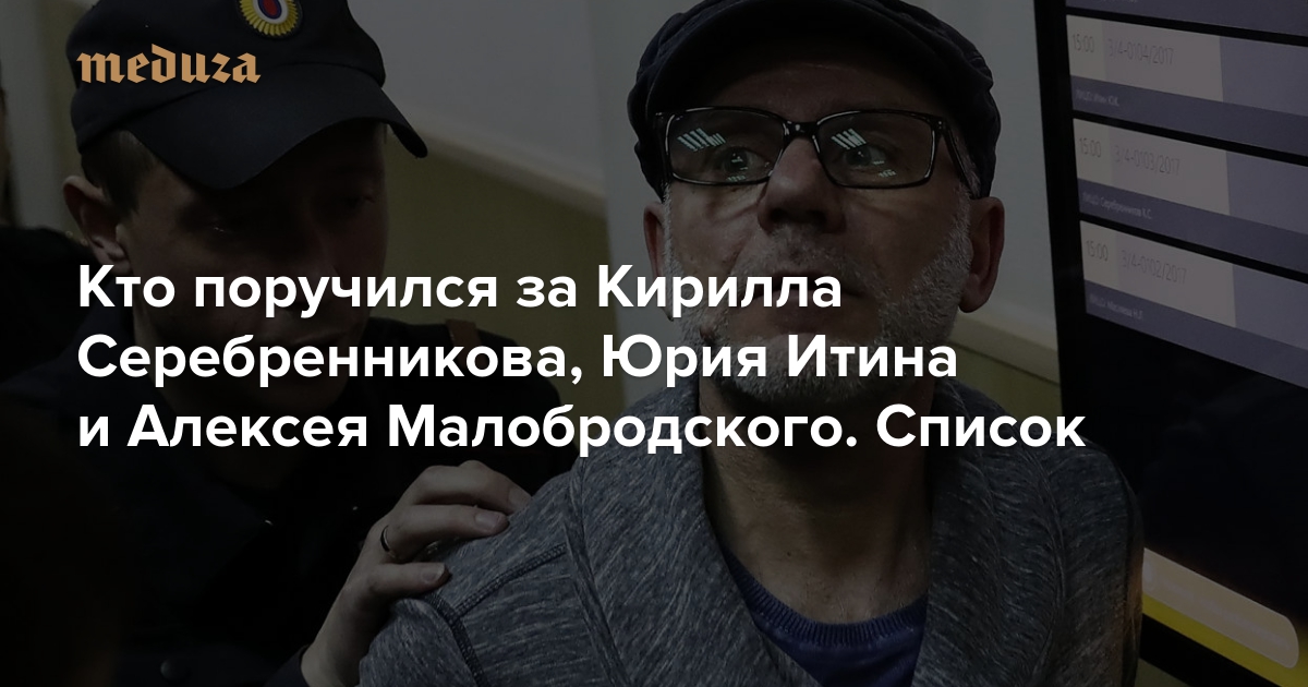 Кто поручился за Кирилла Серебренникова, Юрия Итина и Алексея Малобродского. Список