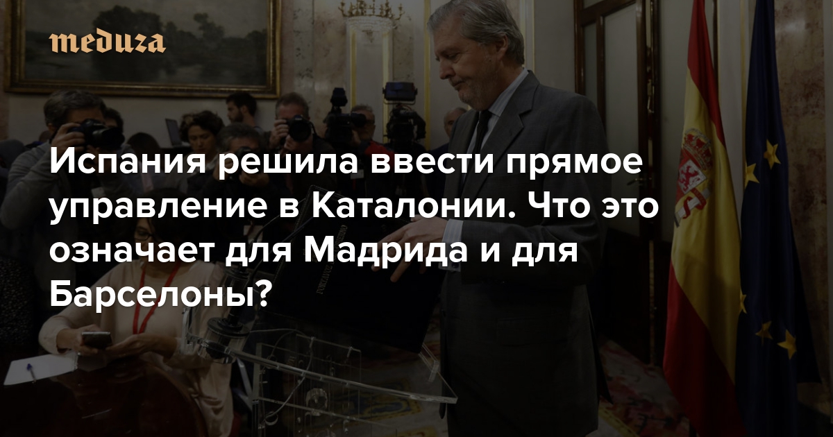 Власти Испании объявили, что автономный статус Каталонии будет приостановлен. На экстренном заседании правительства 21 октября, как ожидается, примут решение впервые в истории задействовать 155-ю статью Конституции Испании. Она предусмотрена именно для случаев, когда автономные регионы «не исполняют конституционные обязательства» таким образом, что это «значительно подрывает интересы Испании». Конституция позволяет Мадриду принимать любые «необходимые меры», чтобы восстановить порядок и законность, и брать на себя руководство всеми органами региональной власти.