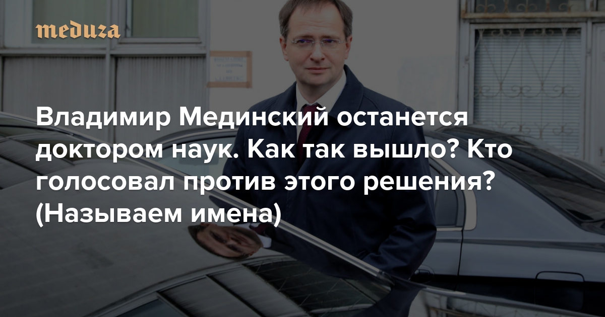Владимир Мединский останется доктором наук. Как так вышло? Кто голосовал против этого решения? (Называем имена)