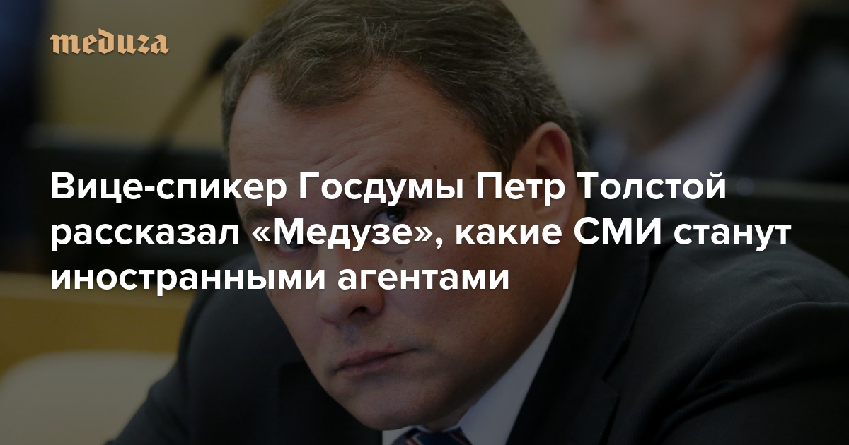 «Это будет точечно» Вице-спикер Госдумы Петр Толстой рассказал «Медузе», какие СМИ станут иностранными агентами