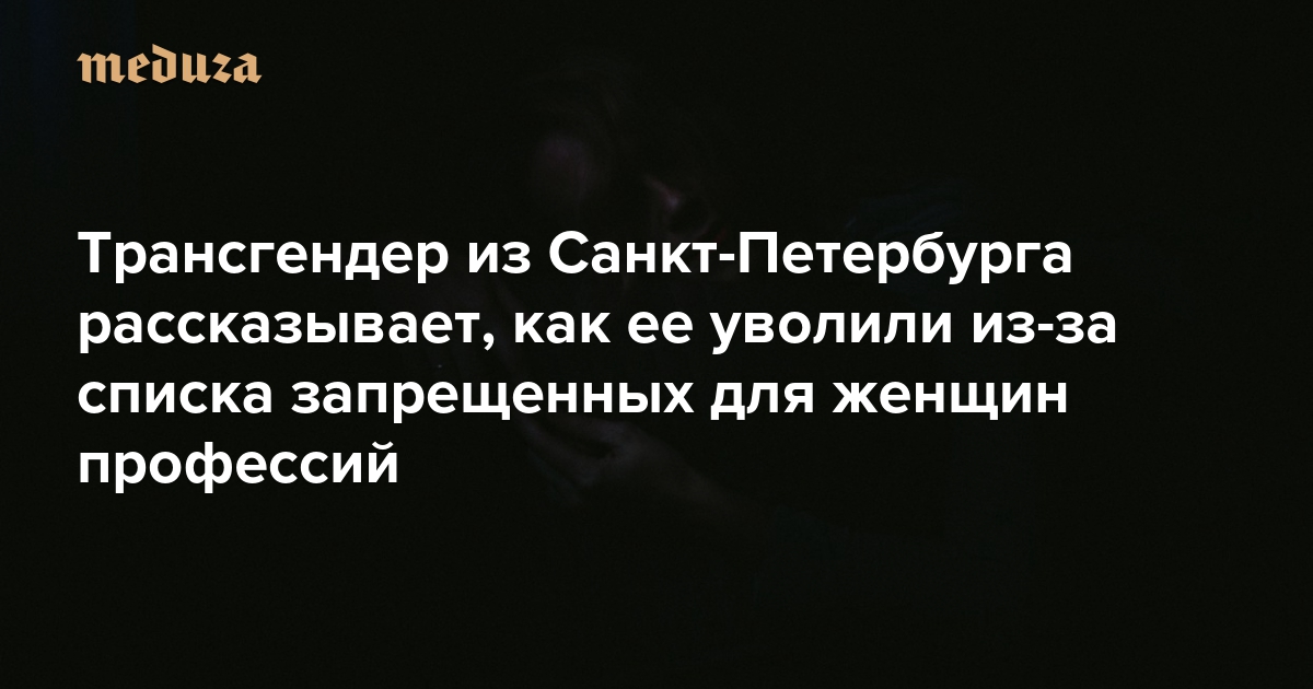 «Почти весь коллектив продолжал обращаться ко мне в мужском роде» Трансгендер из Санкт-Петербурга о том, как скорректировала пол — и была уволена из-за списка запрещенных для женщин профессий
