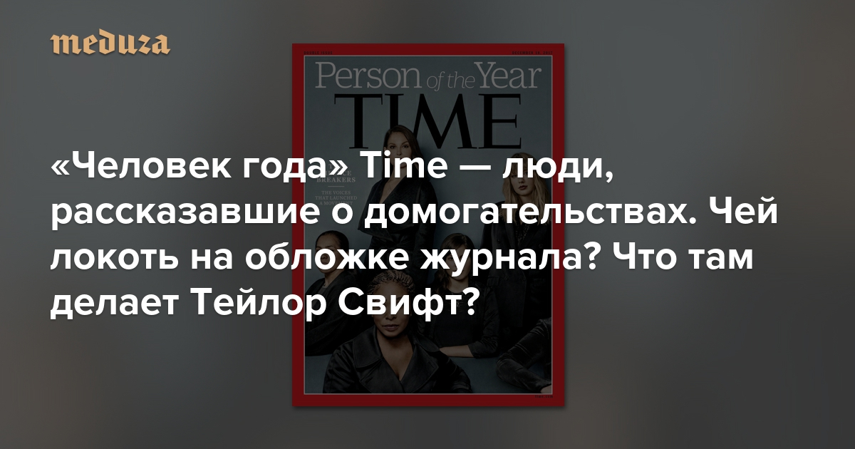 «Человек года» Time — люди, рассказавшие о домогательствах Чей локоть на обложке журнала? Что там делает Тейлор Свифт? Почему нет мужчин?