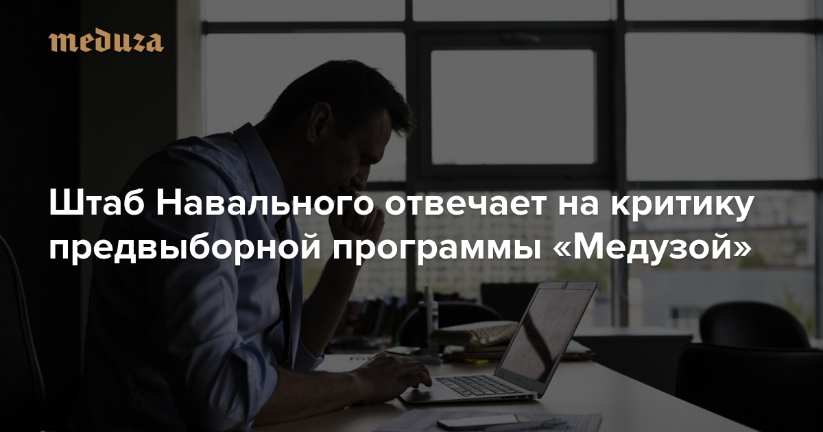 «Медуза» опубликовала вопросы к предвыборной программе Алексея Навального. Дискуссия — это отличная вещь, мы к ней готовы и с удовольствием разъясним свою позицию. Нам показалось, что большинство опубликованных вопросов связано с двумя причинами: 1) авторы неверно поняли некоторые детали программы (сейчас подробно их поясним); 2) вопросы задаются не к программе как таковой, а к последствиям ее реализации — и это приводит к полемике, основанной на достаточно спорных утверждениях.