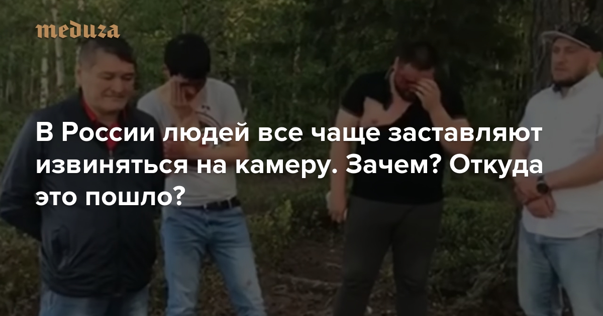 Практика принудительных или вынужденных извинений на камеру стала повсеместной. 9 декабря появился ролик, на котором студента РАНХиГС Олега Терещенко заставляют извиниться за комментарий во «ВКонтакте» о том, что традиции запрещают чеченским девушкам встречаться с русскими, хотя по закону нельзя ограничивать их свободу. Через два дня генеральному директору Comedy Club Production Андрею Левину пришлось извиняться за шутку про ингушскую девушку из эскорт-агентства в выпуске шоу «Comedy Woman» — после того как несколько десятков ингушей приехали в офис компании выяснять отношения с руководством. Чуть позже канал выпустил ролик, в котором прощения перед ингушскими зрителями просят сразу несколько сотрудников ТНТ. «Медуза» изучила десятки случаев публичных извинений последних лет и рассказывает об особенностях этого жанра — и о том, откуда он мог взяться.