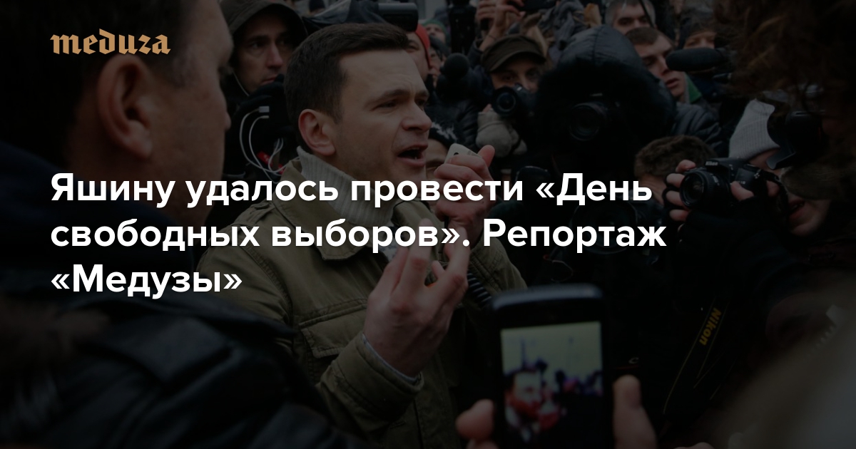 Сам Илья Яшин в это время общался с полицией, которая встретила его возле дома, чтобы напомнить, что его акция не согласована. Тем не менее задерживать Яшина полицейские не стали — и с опозданием в десять минут он все же появился в Лермонтовском сквере. «День свободных выборов» начался, вокруг главы совета депутатов Красносельского района стояли больше тысячи человек.