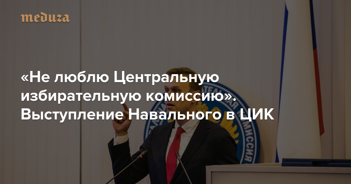 ЦИК отказался зарегистрировать Алексея Навального кандидатом в президенты. 24 декабря собрания инициативных групп по выдвижения Навального прошли в 20 городах России, включая Москву. Вечером того же дня документы для регистрации Навального был поданы в ЦИК. Днем 25 декабря Навального пригласили на заседание ЦИК, где политик выступил с речью. «Медуза» публикует видео и расшифровку выступления политика.