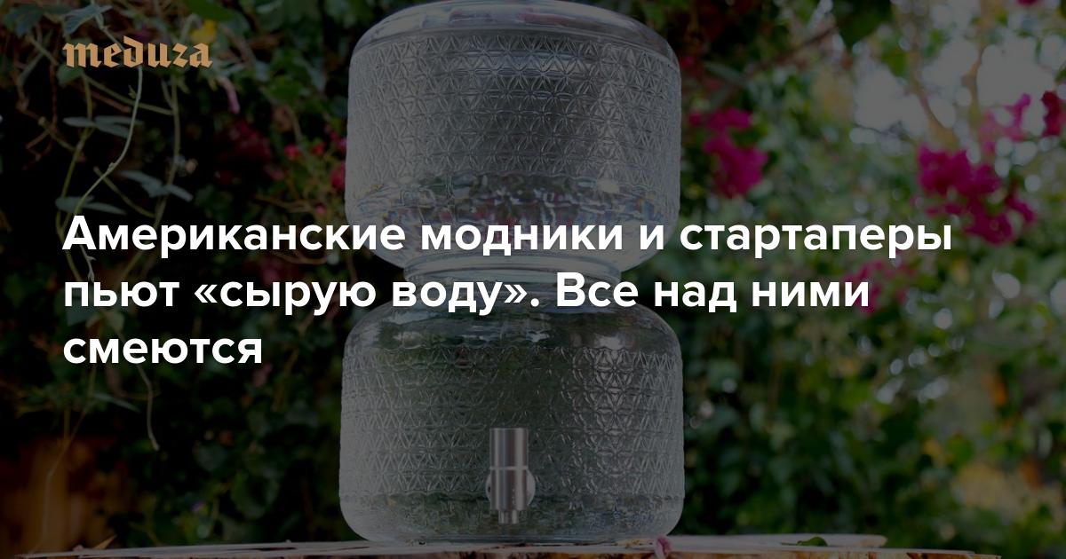 После публикации в The New York Times в Америке начали активно обсуждать моду на «сырую воду». Этот термин подразумевает отказ от обычной питьевой воды (в бутылках или из-под крана) в пользу «настоящей» — из родников или из «окружающей атмосферы». «Сырая вода» стоит во много раз дороже настоящей и пользуется спросом в основном на западном побережье США — среди стартаперов и эко-активистов. «Медуза» рассказывает, в чем смысл «сырой воды» и почему на самом деле это вредно.