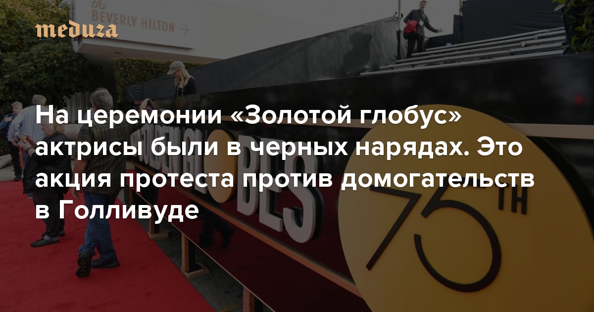7 января в Голливуде прошла 75-я церемония «Золотой глобус» — вручение одной из самых значимых наград в мире кино и телевидения. Многие американские актрисы заявили, что придут на нее в нарядах черного цвета — в знак протеста против харассмента и сексуального насилия в киноиндустрии (а также в знак солидарности с пострадавшими от него). Однако эта идея понравилась не всем. Накануне церемонии «Медуза» рассказывает, откуда взялась идея «нарядного протеста», кто ее поддержал, а кто — нет.