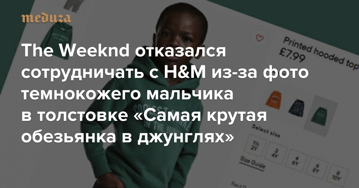 H&M опубликовала фото темнокожего мальчика в толстовке с надписью «Самая крутая обезьянка в джунглях». Музыкант The Weeknd отказался сотрудничать с брендом