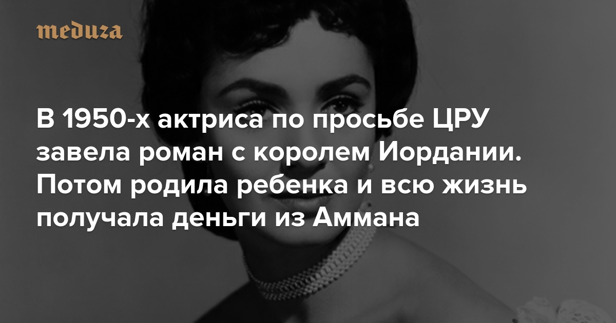 В 1950-х актриса по просьбе ЦРУ завела роман с королем Иордании. Потом родила ребенка и всю жизнь получала деньги из Аммана