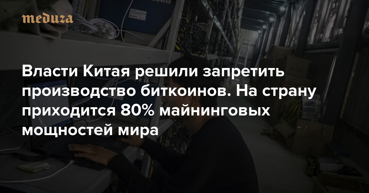 Власти Китая решили запретить производство биткоинов. На страну приходится 80% майнинговых мощностей мира