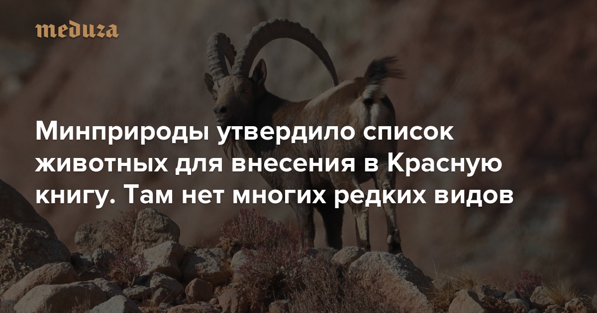 В конце декабря 2017 года Минприроды утвердило новую редакцию Красной книги России. Во время работы над изданием министерство неожиданно поменяло регламент работы комиссии, которая определяет, какие животные должны войти в Красную книгу. Зоологи связали это с тем, что список животных хотели отредактировать влиятельные охотничьи объединения. Текст новой редакции пока не опубликован, однако в распоряжении «Медузы» оказался утвержденный Минприроды список животных, предлагаемых к внесению в Красную книги. В нем отсутствуют многие виды, которые, по мнению зоологов, нуждаются в охране.