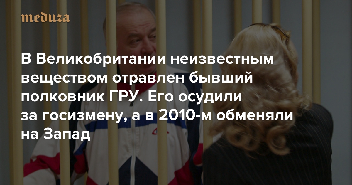 В Великобритании неизвестным веществом отравлен бывший полковник ГРУ. Его осудили за госизмену, а в 2010-м обменяли на Запад