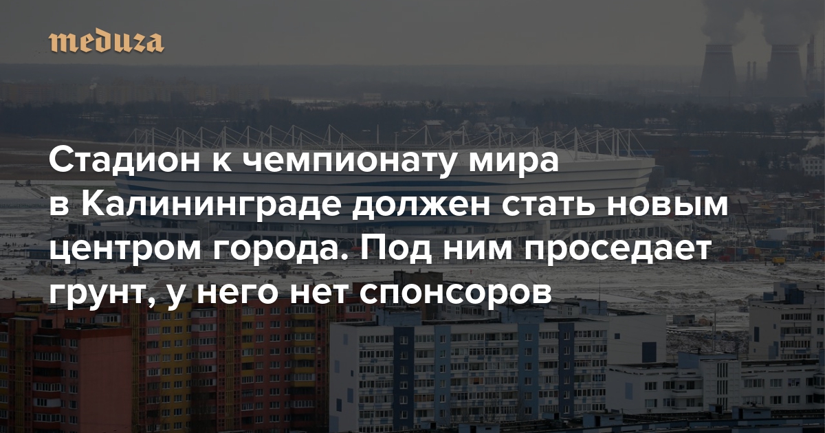 14 июня в России начнется чемпионат мира по футболу, матчи пройдут в 11 городах. Во многих из них к турниру строятся новые стадионы. Одна из самых масштабных строек затеяна в Калининграде — по замыслу местных властей сооружение стадиона должно было привести к превращению ранее не освоенной территории в новый центр города. На деле строительство привело к многочисленным административным конфликтам и уголовному делу о хищении 750 миллионов рублей, почва под стадионом до последнего времени осыпалась; что с ним будет после чемпионата мира, по-прежнему большой вопрос. По просьбе «Медузы» заместитель главного редактора издания «Новый Калининград» Вадим Хлебников рассказывает историю калининградского стадиона.