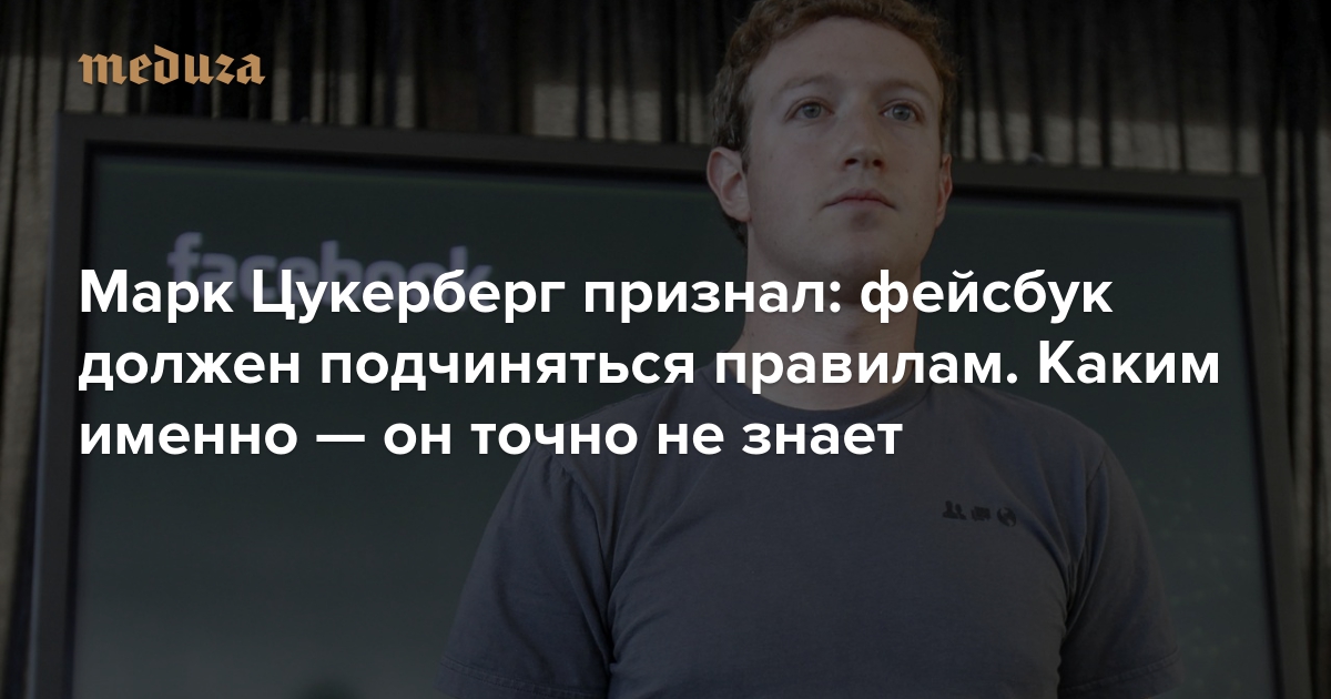 Марк Цукерберг признал: фейсбук должен подчиняться правилам. Каким именно — он точно не знает