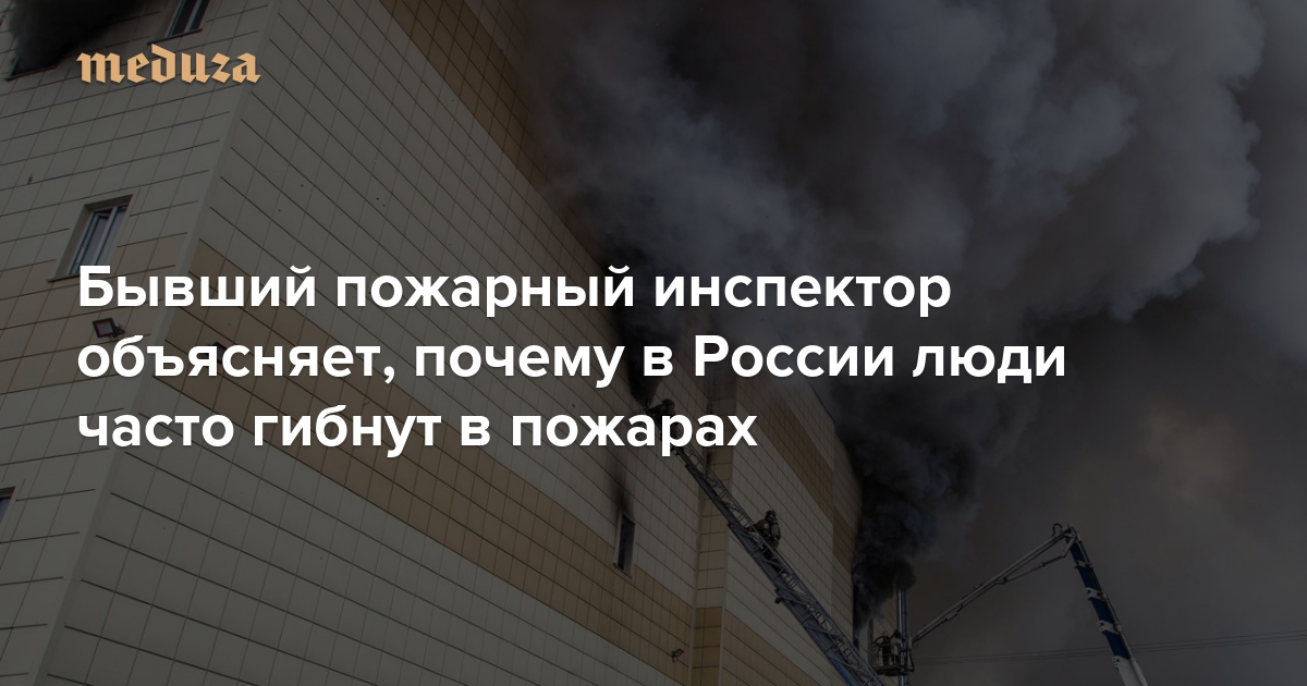 25 марта в Кемерово загорелся торговый центр «Зимняя вишня» — погибли не меньше 64 человек, среди них много детей. Это далеко не первый пожар с большим количеством жертв: в России в пожарах ежегодно гибнет больше людей, чем в среднем по миру. «Медуза» попросила бывшего сотрудника государственного противопожарного надзора, специалиста по пожарной безопасности Михаила Семенова объяснить, почему система работает так плохо.