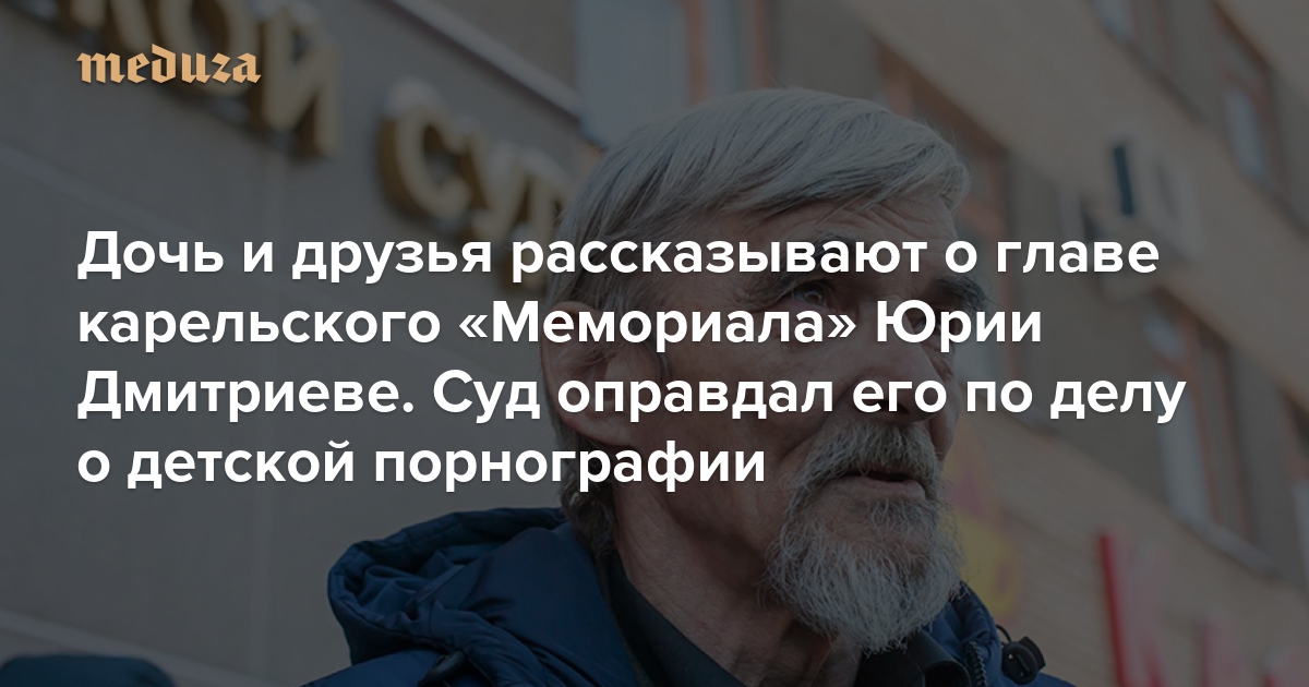 5 апреля Петрозаводский городской суд признал историка, публициста и главу карельского «Мемориала» Юрия Дмитриева невиновным в изготовлении детской порнографии. Тем не менее суд на 2,5 года ограничил свободу Дмитриеву — по обвинению в незаконном хранении оружия. Гособвинение просило дать ему девять лет колонии. По просьбе «Медузы» журналист из Петрозаводска Глеб Яровой поговорил с дочерью и друзьями Дмитриева о том, что они думают о суде и о деятельности Дмитриева.