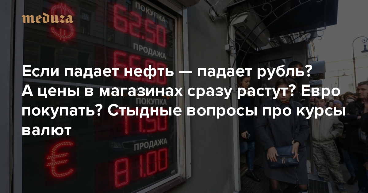 Если падает нефть — падает рубль? А цены в магазинах сразу растут? Евро покупать? Стыдные вопросы про курсы валют
