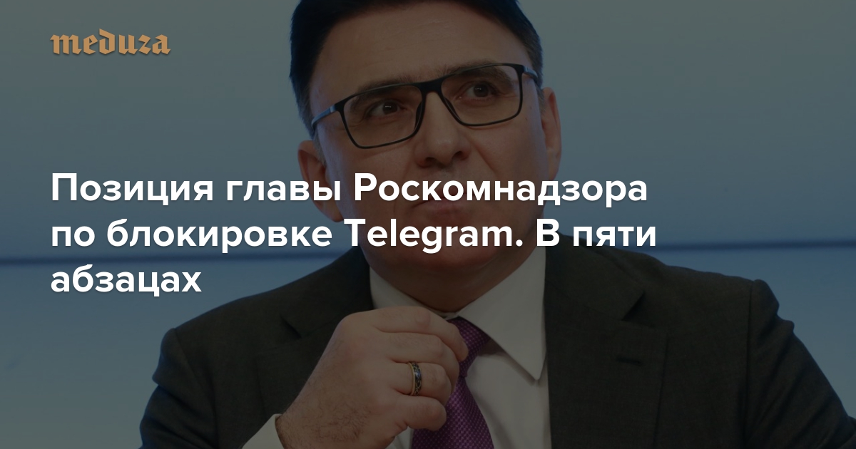 Дуров покрывает террористов, добропорядочные сайты не пострадали, скоро проверим Facebook Позиция главы Роскомнадзора по блокировке Telegram. В пяти абзацах